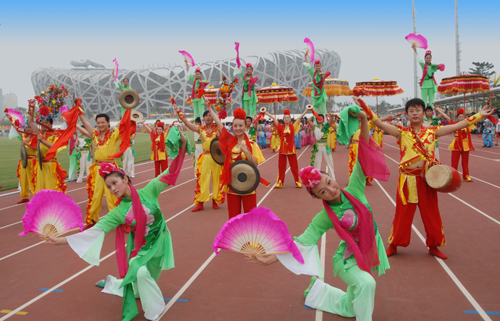 蚌埠花鼓燈在北京奧運會開幕式展演。