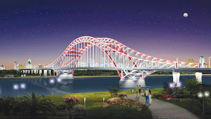 長淮衛(wèi)公路橋及接線工程全長14.1公里。整個(gè)工程除長淮衛(wèi)公路橋外,還包括兩座下穿鐵路立交橋和兩座小型橋梁,工程概算總投資約18億元。據(jù)介紹,長淮衛(wèi)公路橋總長4266米,南起龍子湖區(qū)長淮衛(wèi)鎮(zhèn),北接淮上區(qū)吳小街鎮(zhèn)。大橋主橋長360米,寬42.5米,為雙向八車道;引橋部分略窄,寬41.5米。長淮衛(wèi)橋采用桁架拱橋橋型,主體為鋼結(jié)構(gòu),遠(yuǎn)望如飛龍橫跨淮河,氣勢(shì)宏偉。我市現(xiàn)有的三座淮河公路橋分別是斜拉橋、梁式橋和懸索橋,如今再添桁架拱橋,一橋一景,仿佛橋梁博物館。